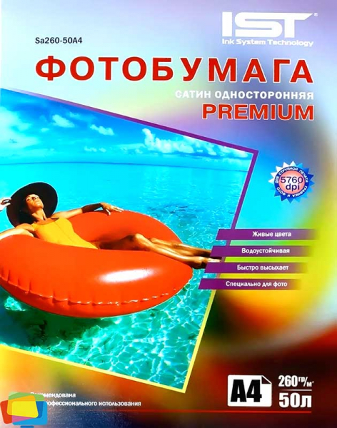 Бумага для струйной печати IST Premium "Сатин" полуглянцевая A4, 260 г/м2, 50 л. (Sa260-50A4)