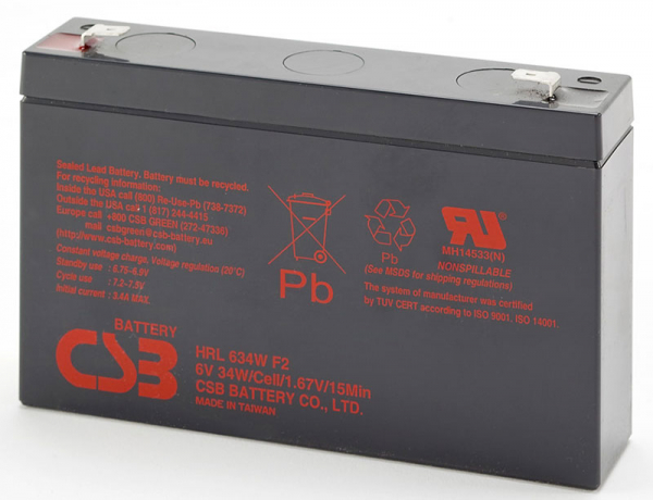 Батарея для ИБП CSB HRL 634W F2, 6В, 9Ач