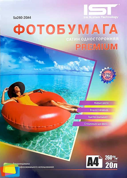 Бумага для струйной печати IST Premium "Сатин" полуглянцевая A4, 260 г/м2, 20 л. (Sa260-20A4)