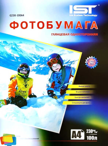 Бумага для струйной печати IST глянцевая A4, 230 г/м2, 100 л. (G230-100A4)