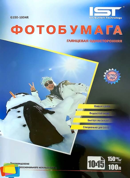 Бумага для струйной печати IST глянцевая 10x15, 150 г/м2, 100 л. (G150-1004R)