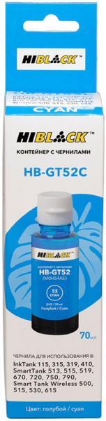 Чернила для HP HI-BLACK HB-GT52C, водные, 70 мл, голубые