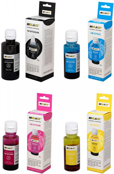 Комплект чернил для HP HI-BLACK GT53/GT52, пигмент + водные, 140 мл + 3 x 70 мл, 4 цвета