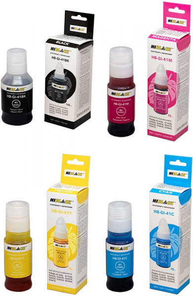 Комплект чернил для Canon HI-BLACK GI-41, пигмент + водные, 140 мл + 3 x 70 мл, 4 цвета