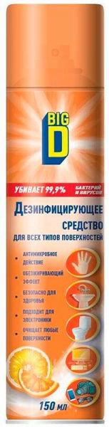 Средство дезинфицирующее (антисептик) для поверхностей Big D, аэрозоль, 150 мл