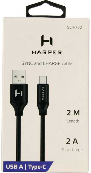 Кабель USB Type-C - USB Am, HARPER SCH-732, 2 м, черный