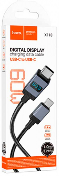 Кабель USB Type-C - USB Type-C, HOCO X118, USB 2.0, 1 м, черный
