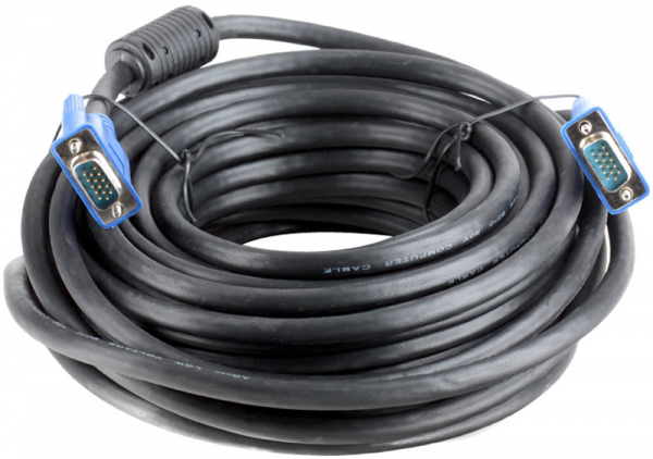 Кабель SVGA, D-SUB (m) - D-SUB (m), VCOM VVG6448-20MC, ферритовые кольца, 20 м, черный