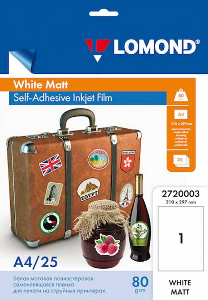 Пленка самоклеящаяся для струйной печати LOMOND, A4, 80 г/м2, матовая, белая, 25 л. (2720003)