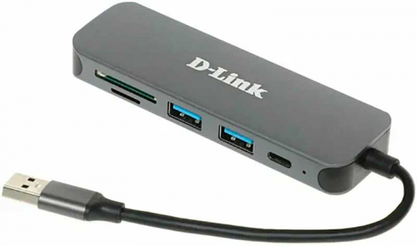 Разветвитель USB 3.0 D-LINK DUB-1325, 2 порта USB 3.0, 1 порт USB 3.0 Type-C, картридер, блок питания, серый