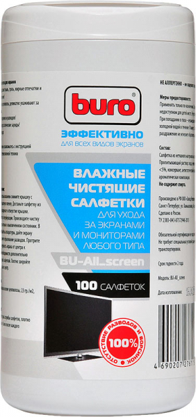 Влажные салфетки для ЖК экранов BURO BU-Tscreen, 100 шт
